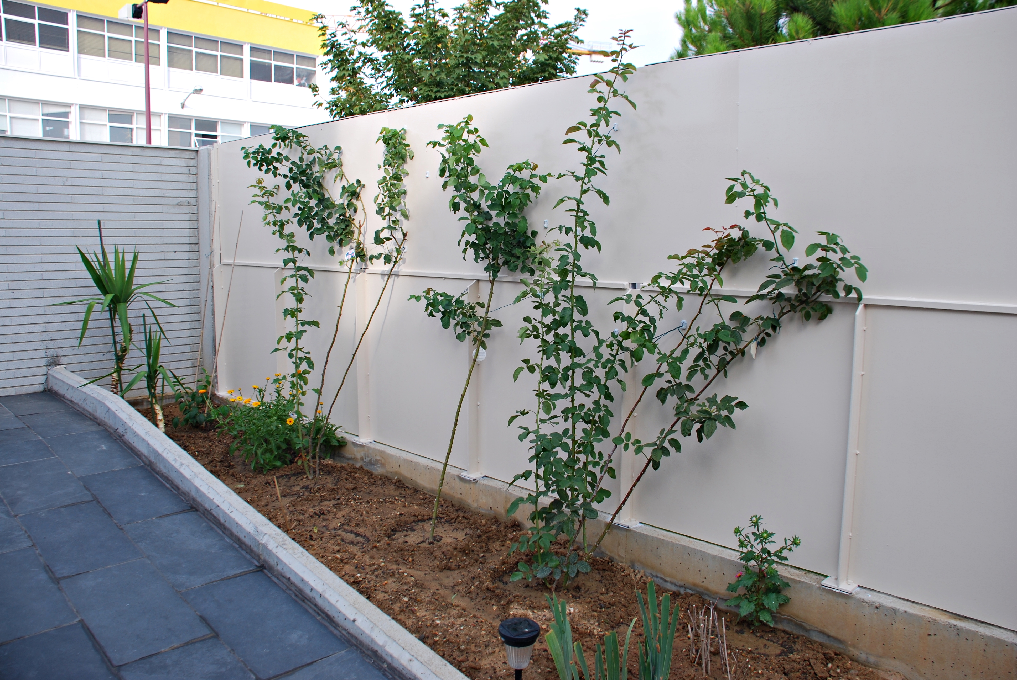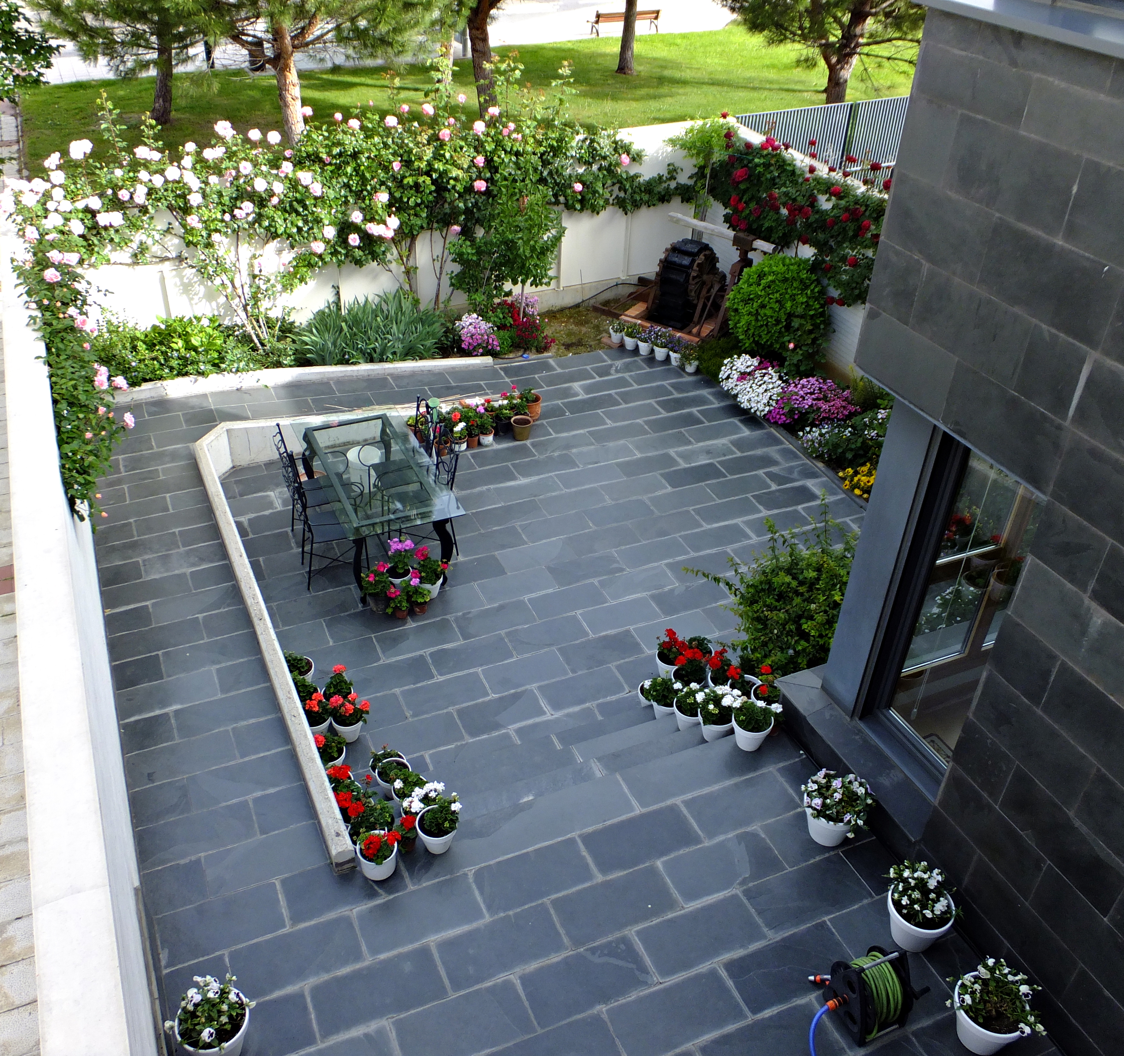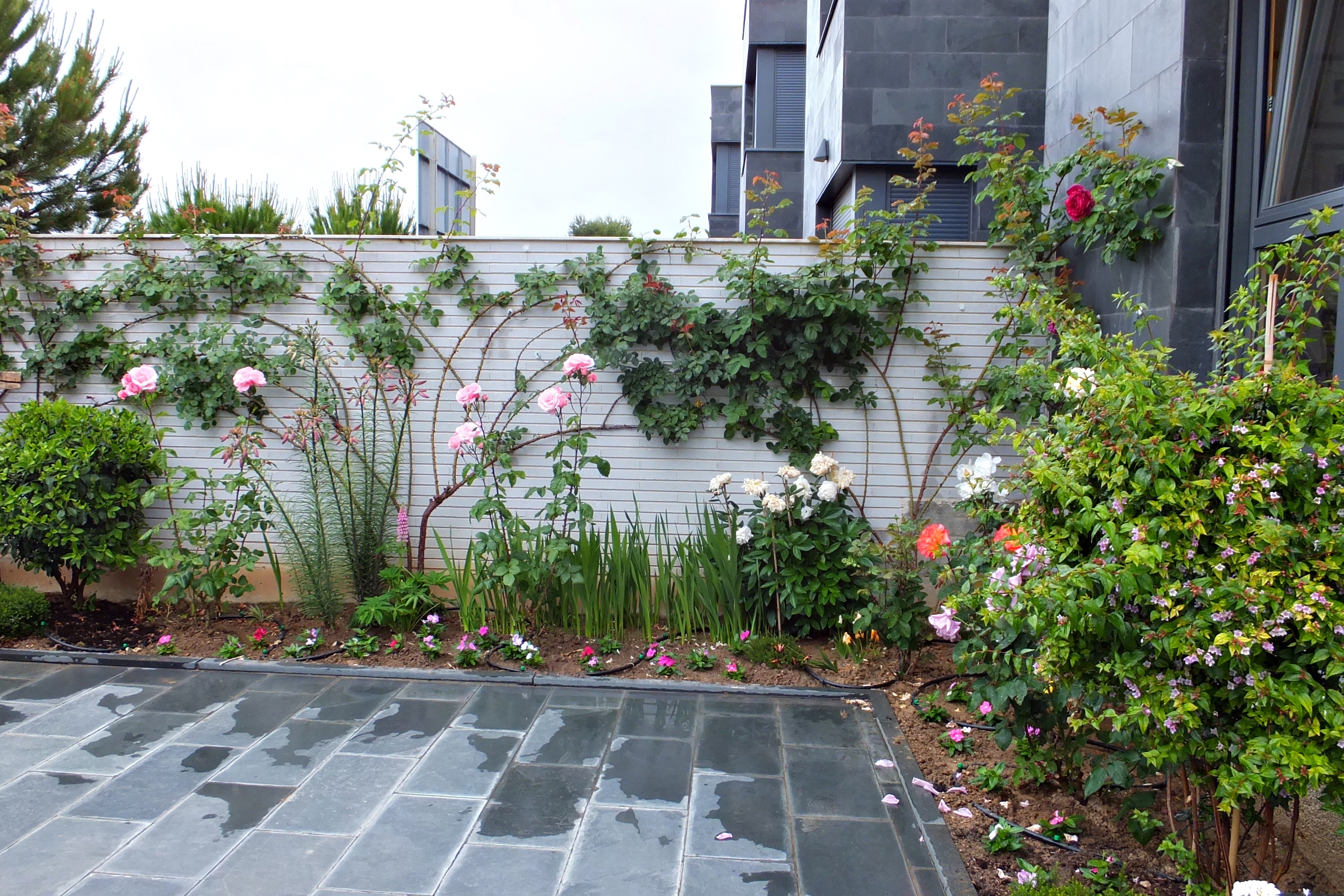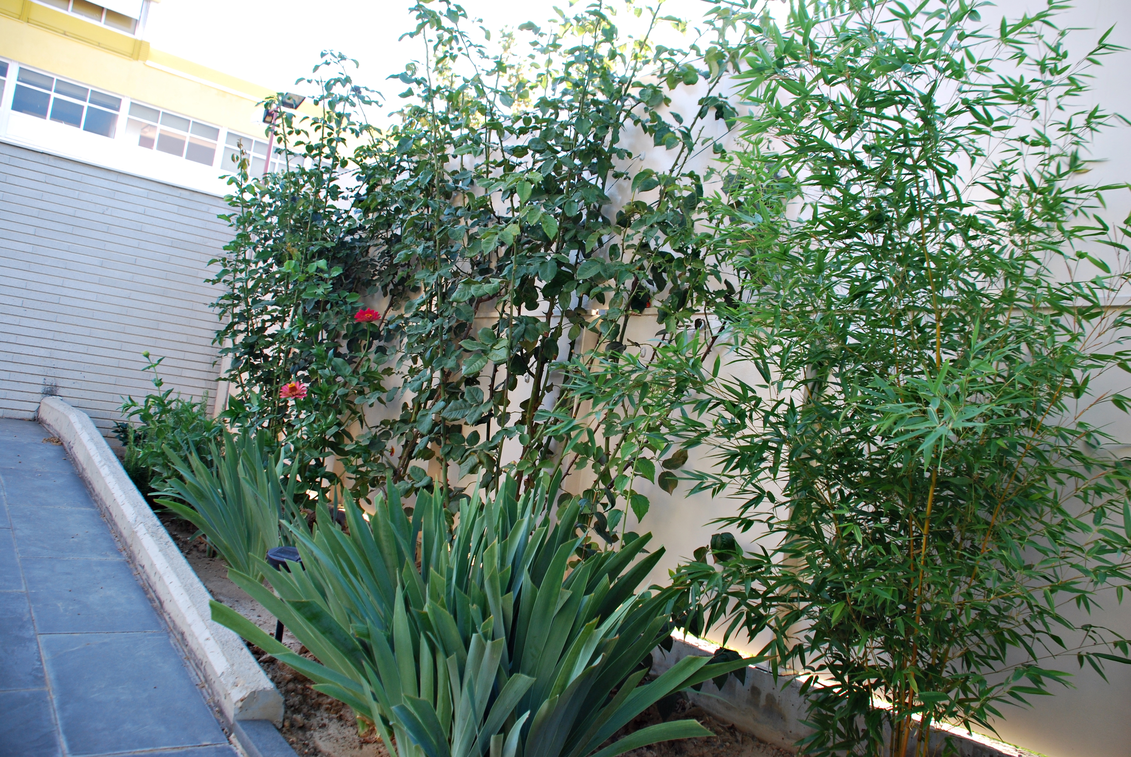 El patio exterior de nuestra casa es un pequeño espacio de unos 70 metros cuadrados en el que una tercera parte está dedicada al cultivo de plantas en el terreno y además un montón de macetas dispersas por el resto.