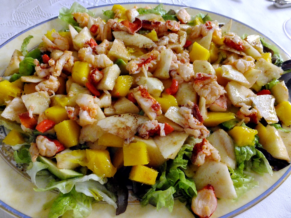 - Ensalada de lechuga, palitos de cangrejo y salsa tártara