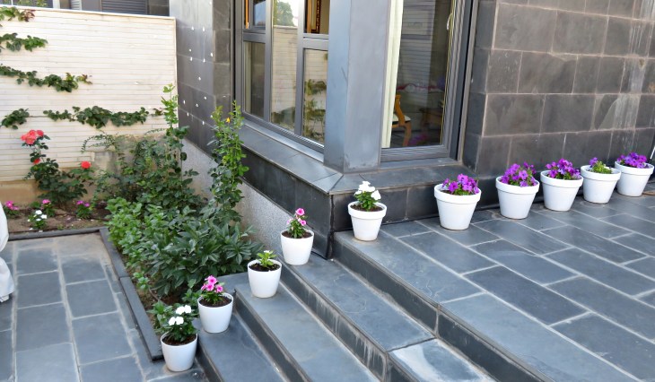 Llevamos ya un mes de verano y las plantas de los patios están despertando de la primavera tormentosa, crecen y florecen, aunque no todas. El patio de entrada está bastante aletargado después de una furiosa poda.