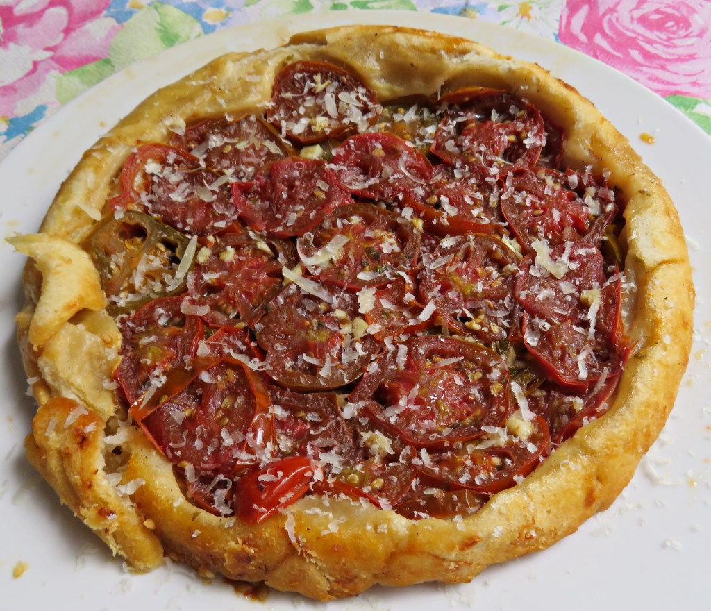 - Hornee (200°C) durante 25-30 minutos hasta que la masa esté dorada. Despegue los bordes con un cuchillo de punta redonda y desmolde dándole la vuelta sobre un plato de servir de modo que los tomates queden arriba y la masa hacia abajo. Sirva caliente o frío con queso curado de oveja por encima.