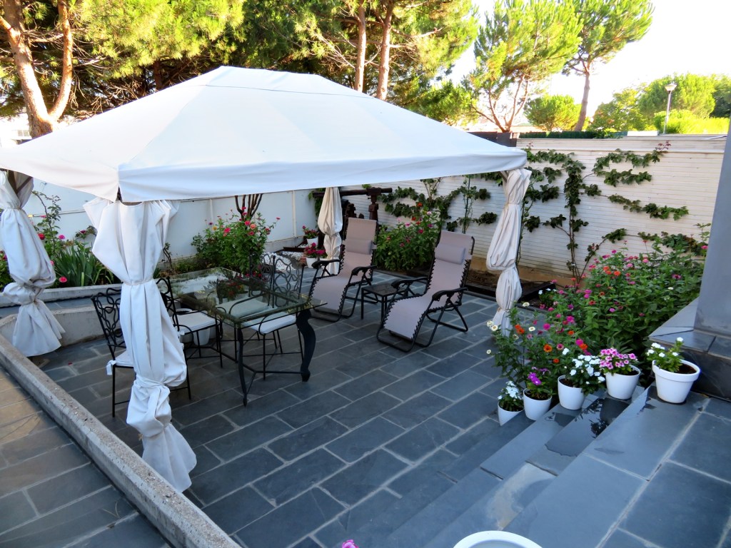 El patio interior está verde y con flores alegres, no demasiadas, pero intensas.
