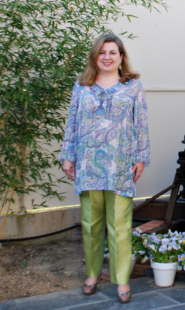 Este conjunto de blusón estampado con un pantalón verde pistacho tiene muchos años y me lo he puesto mucho, pero todavía sirve y es muy cómodo.