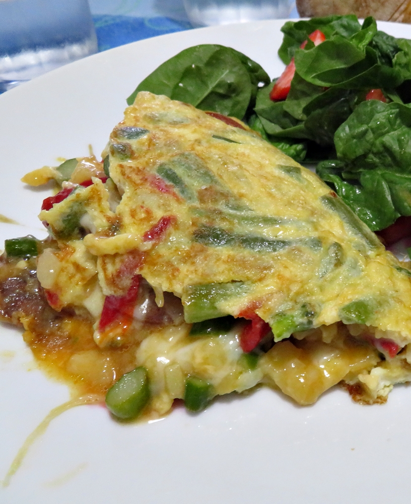 La receta de esta tortilla de verduras con chorizo y queso la saqué de Thermomix y está estupenda. Ahora, la preparo de forma tradicional.