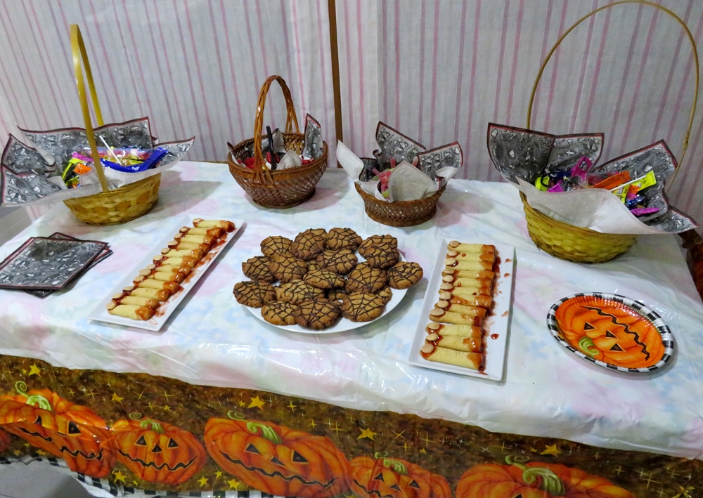 Unos adornos, unos chuches y un par de dulces caseros (dedos sangrientos y galletas de avena y coco).