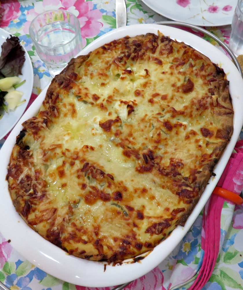- Ya está lista para el horno, unos 15-20 minutos a 180º. Que esté bien gratinada.