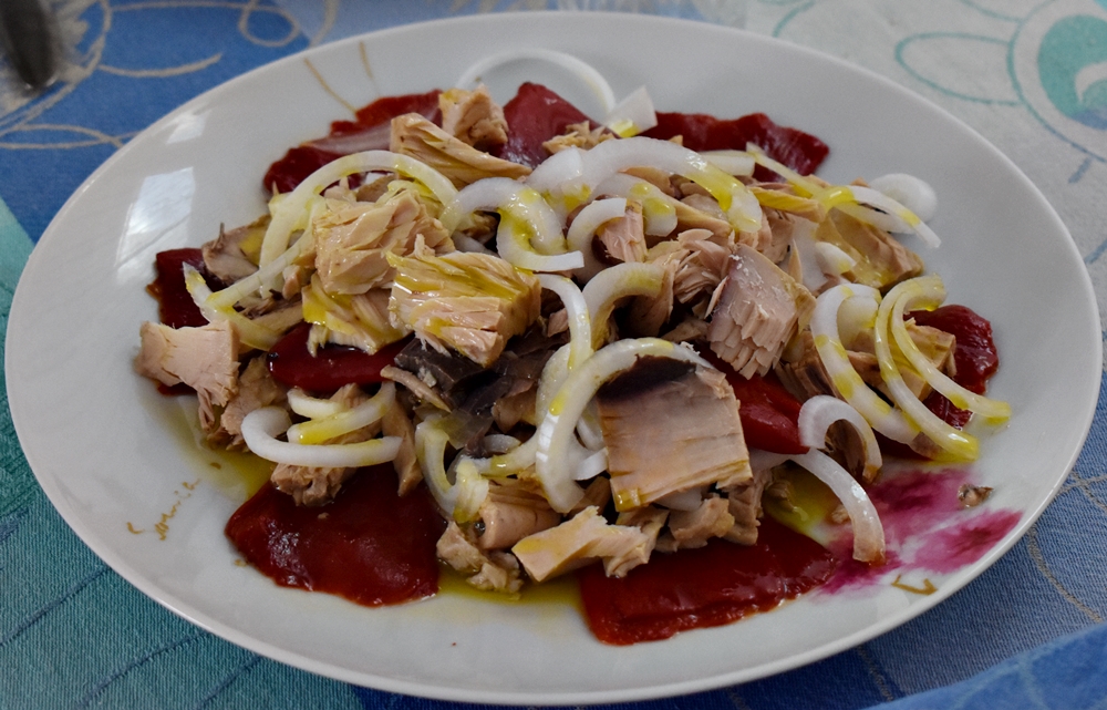 Las ensaladas de bonito son muy típicas, no sé si en todas partes, pero si en Burgos, lo mismo que los pinchos.