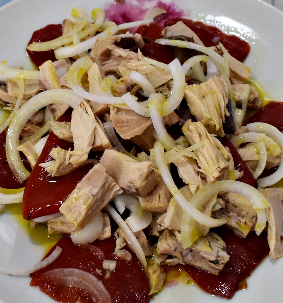 En verano era habitual tomar el bonito en escabeche con cebolleta y tomate, o con pimientos. De todas formas, están estupendas.