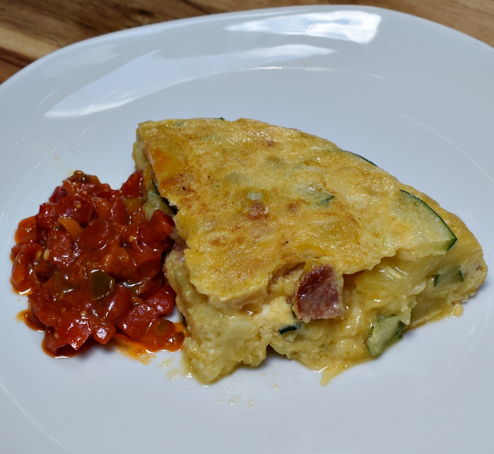 Esta receta de tortilla de calabacín con chorizo es una más para cocinar los calabacines de este verano, que parece que abundan. El mérito no es mío, es de Arguiñano.