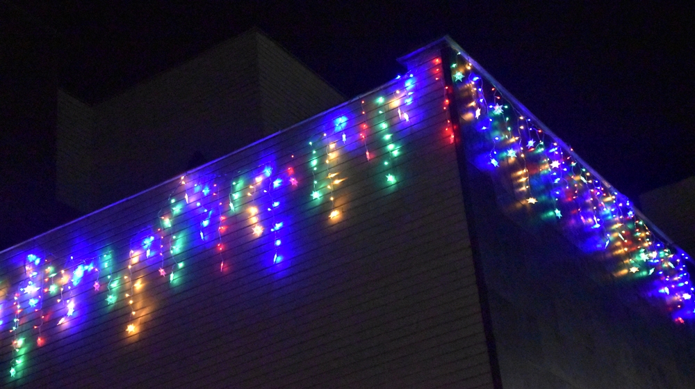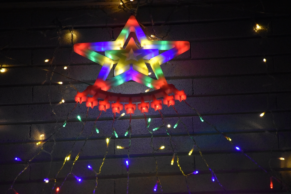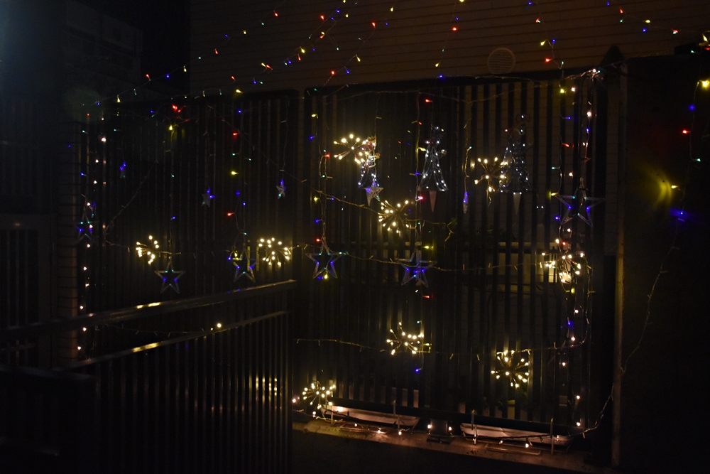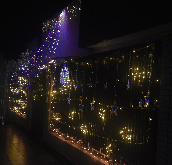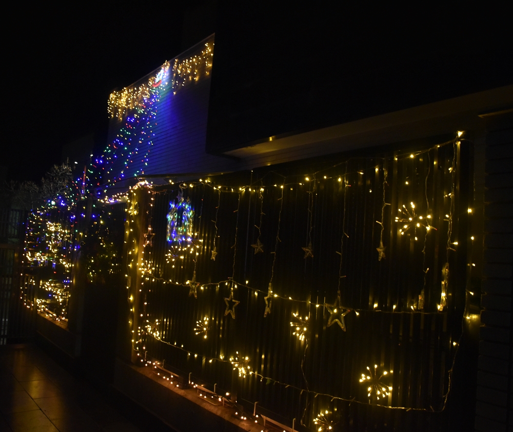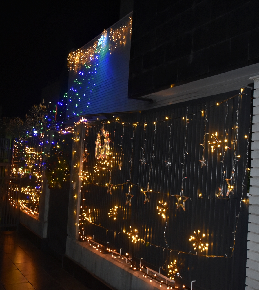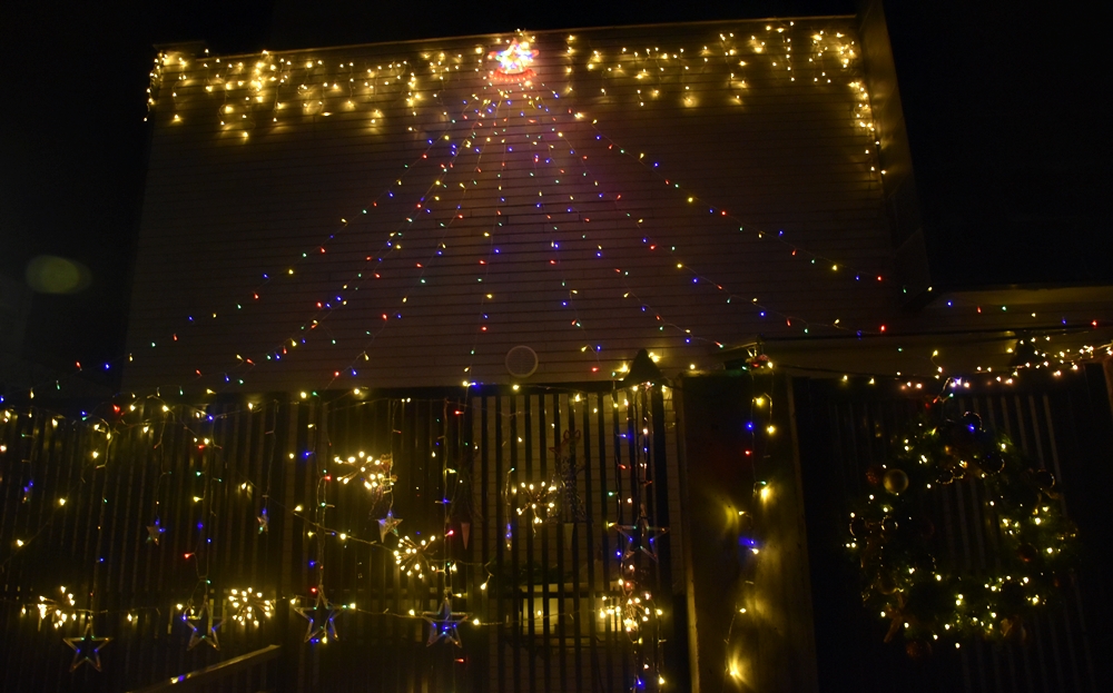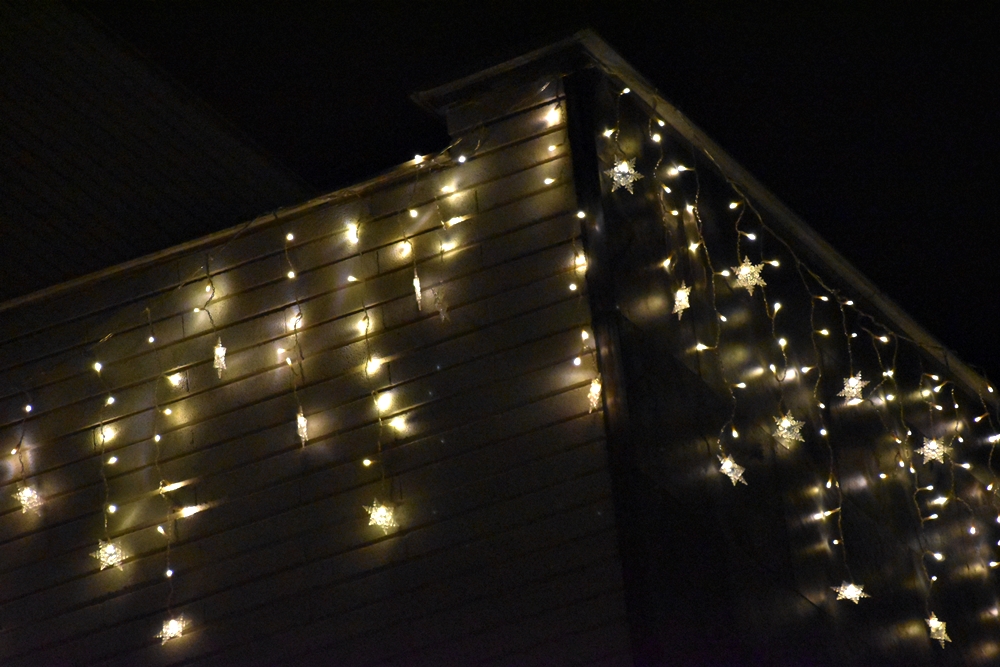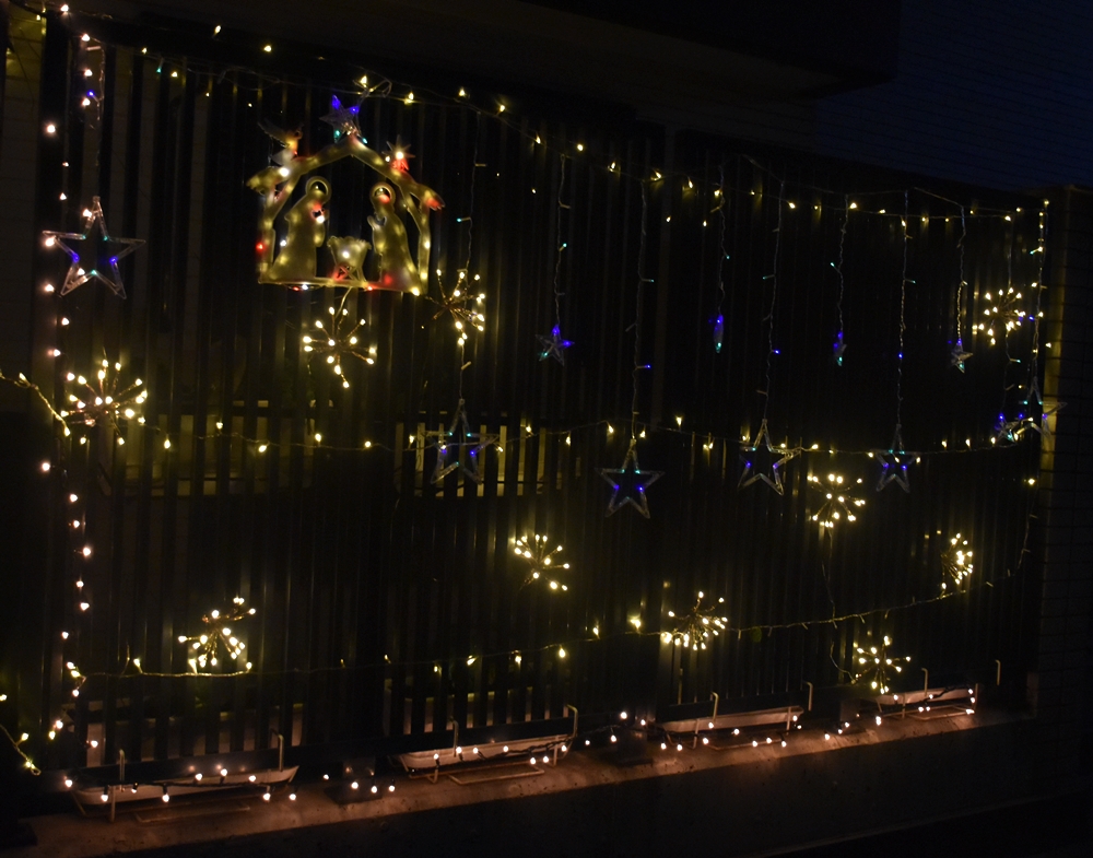 Con bastante esfuerzo, y un poco de retraso, hoy por fin hemos podido encender las luces de Navidad del exterior de casa. Espero que en un par de días hagamos lo mismo con las luminarias interiores.