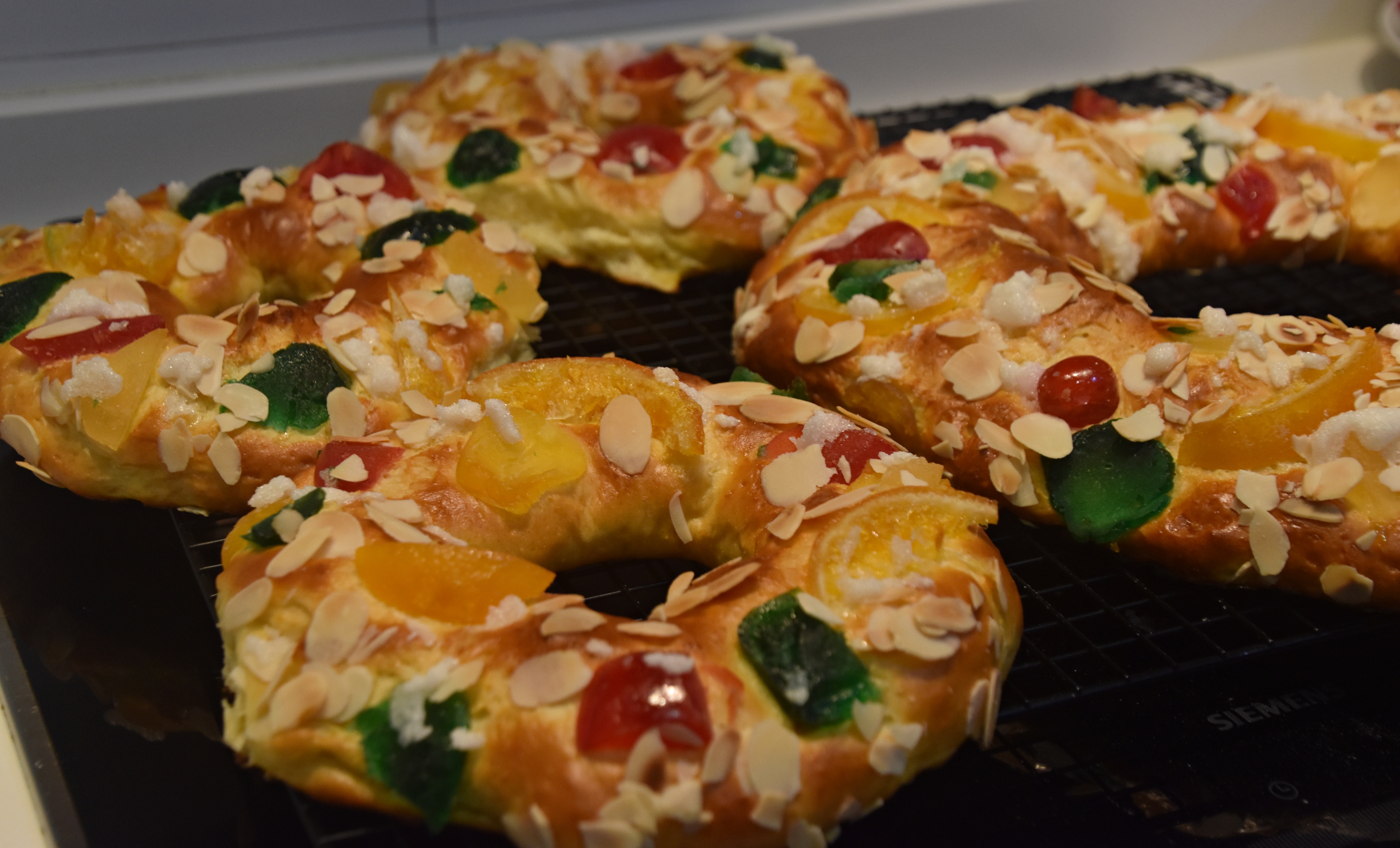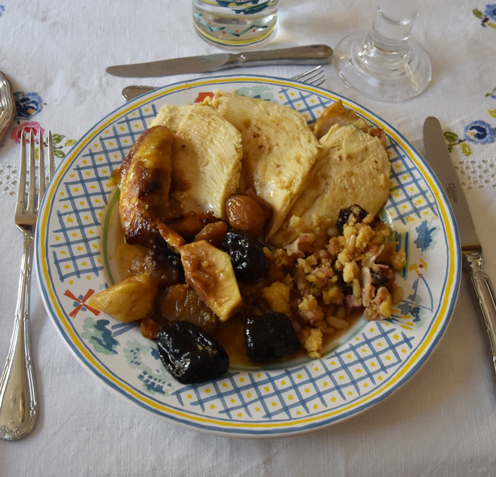 Aquí, así lo hemos celebrado en la mesa, con la pularda al horno y el roscón casero.