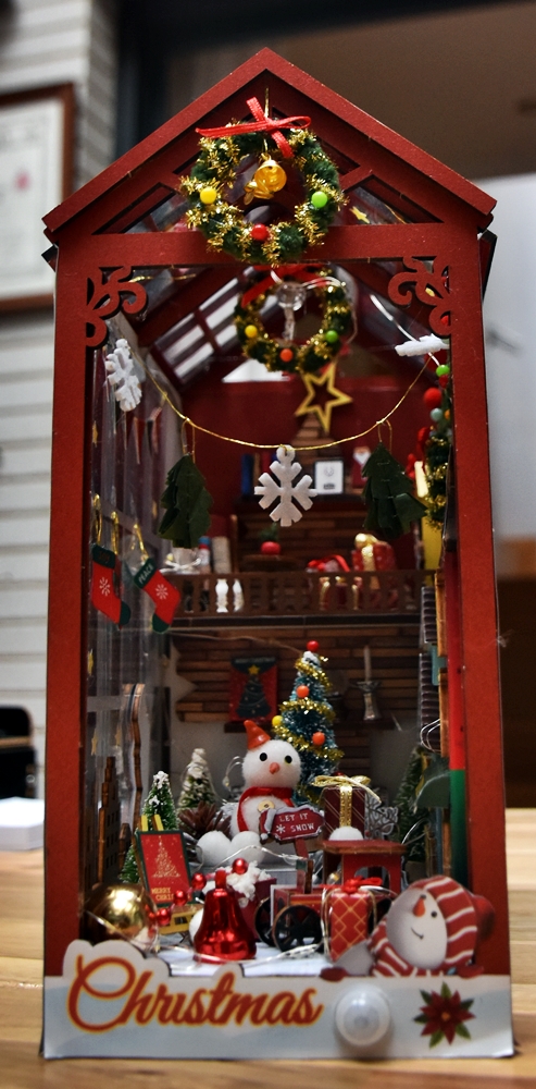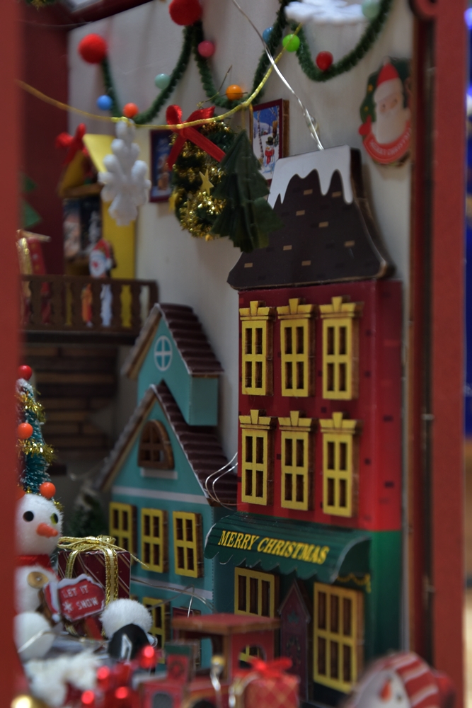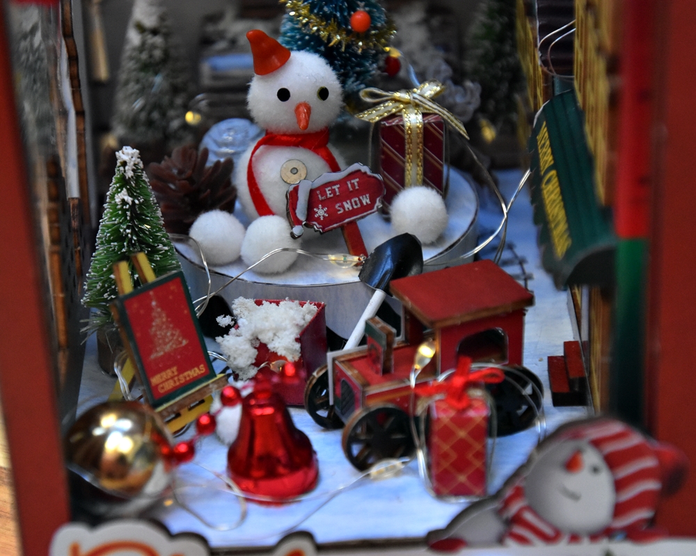 El único problema han sido las luces. No he conseguido que funcionaran, así que he insertado una cadena de luces, aunque se han agotado muy rápido las pilas que vienen con ella. Como el sonido era de cuerda, no he tenido problemas.