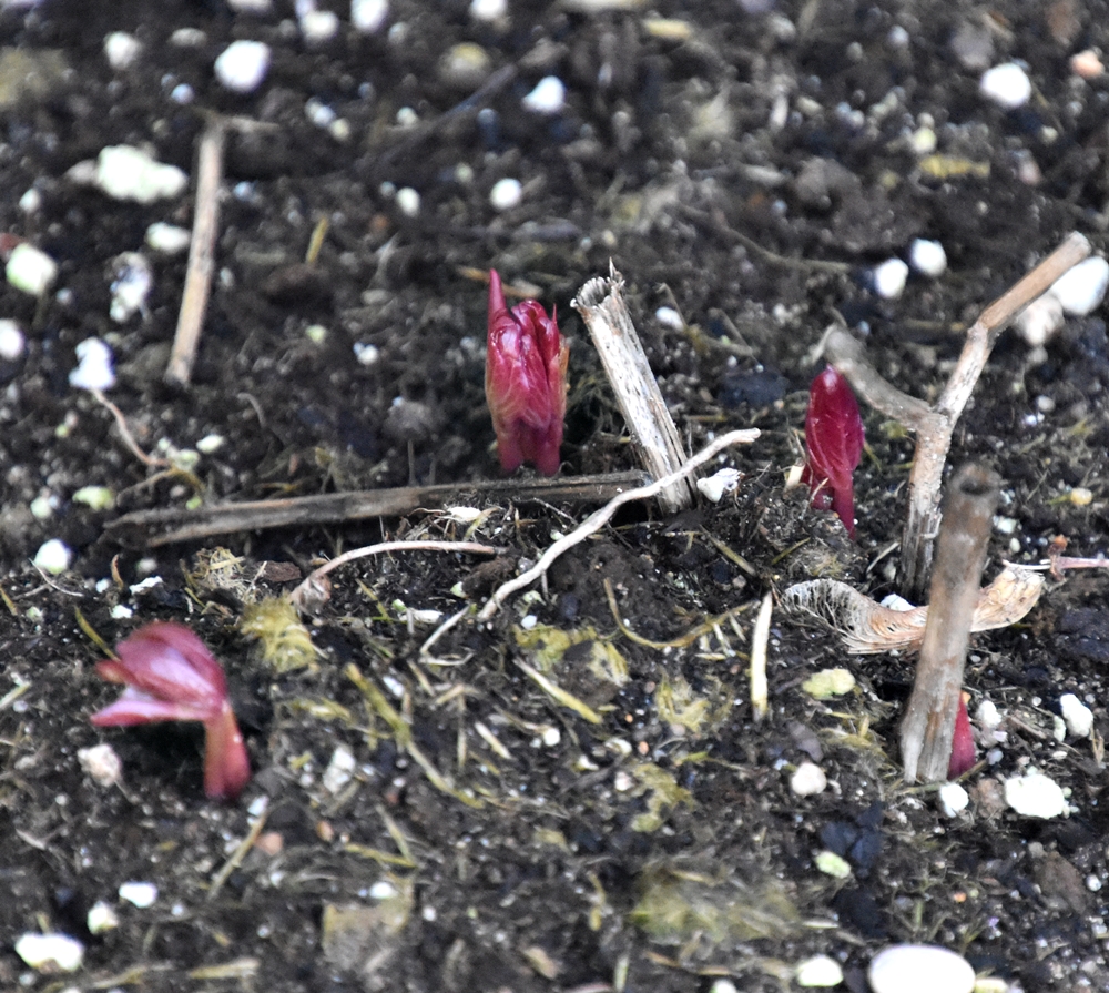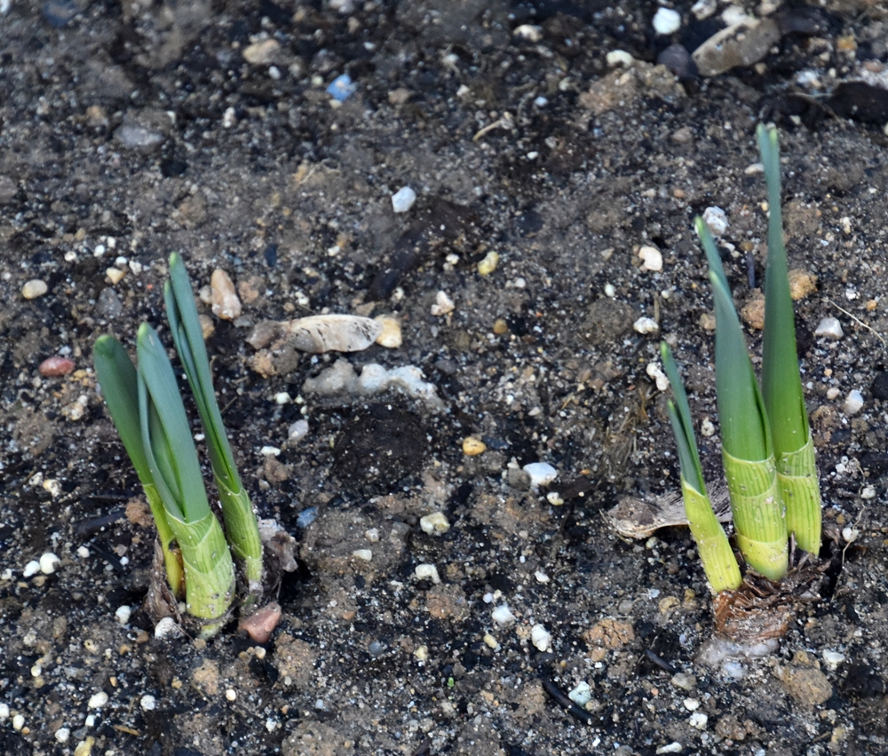 Los bulbos están naciendo bien, ya han aparecido lilium, jacintos, narcisos, algún tulipán, incluso hay pequeños brotes de peonía. Los lirios, son los más desarrollados.