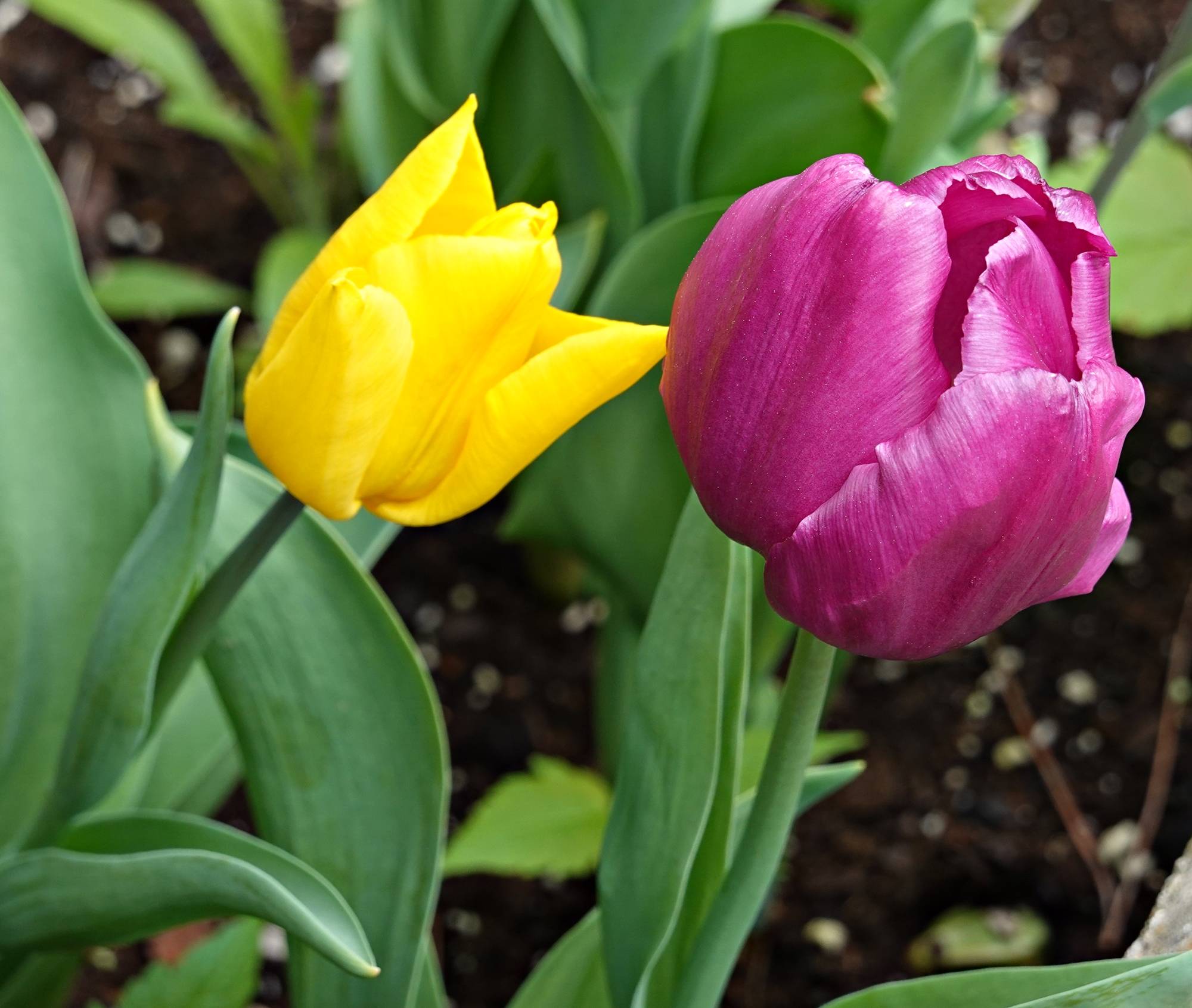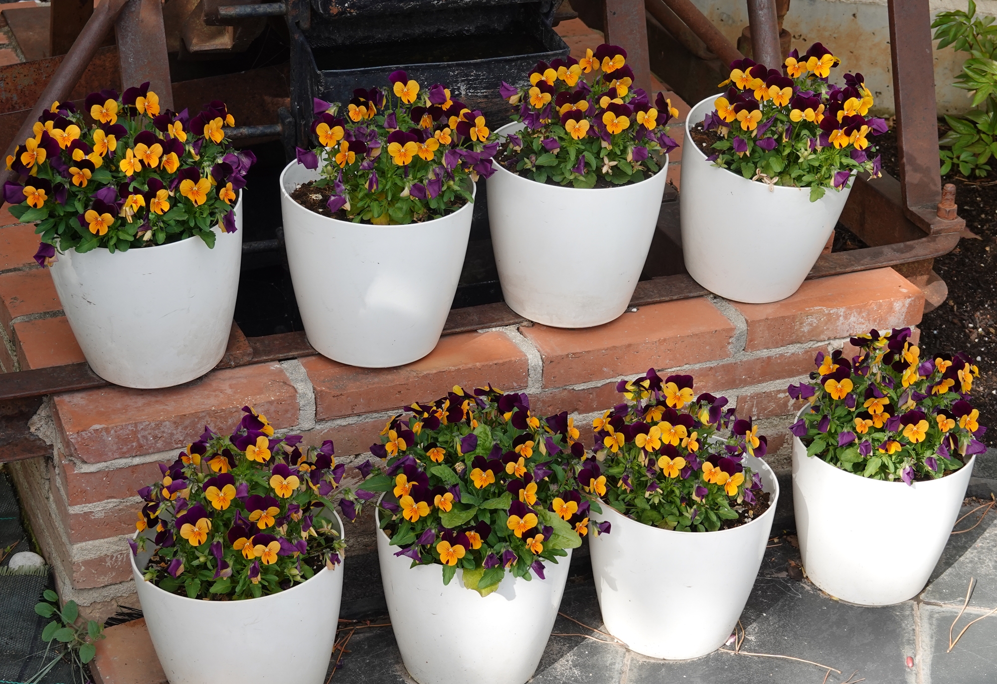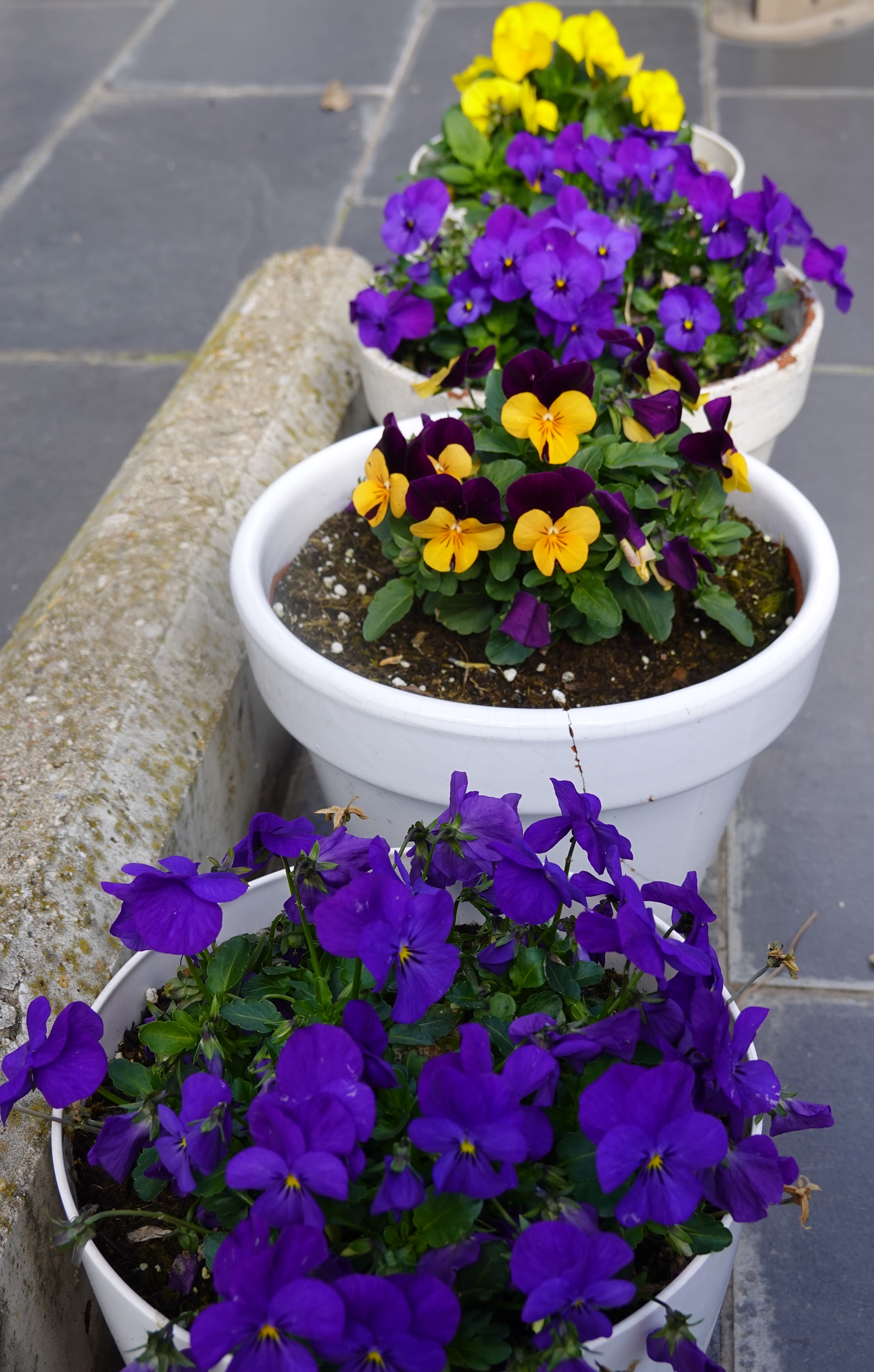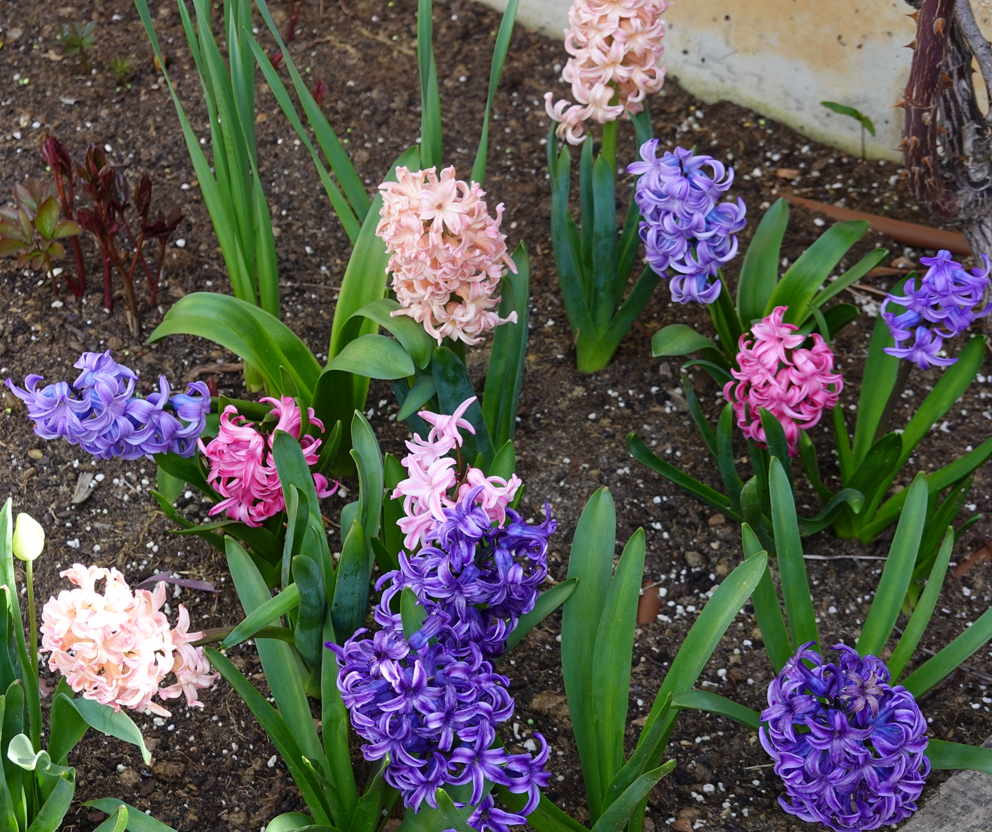 Primero fueron los jacintos y narcisos, con el color de las suculentas al terminar el invierno. Después, se han empezado a abrir los tulipanes y los lirios. Además, están acompañados durante todo el tiempo por pensamientos y violas.