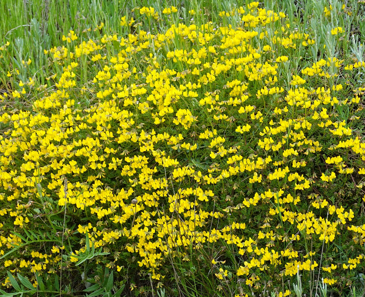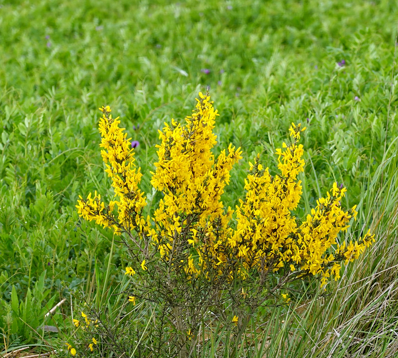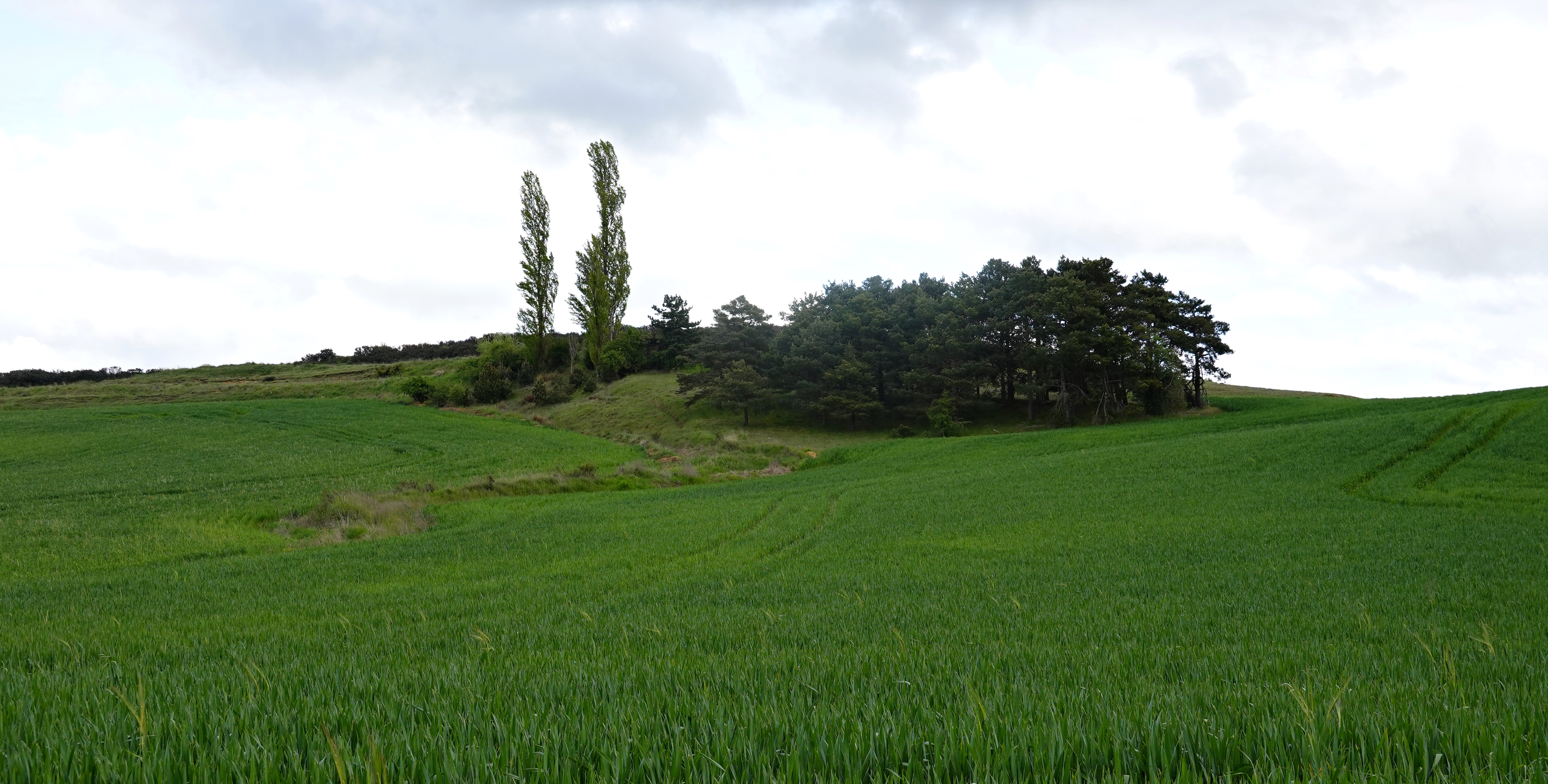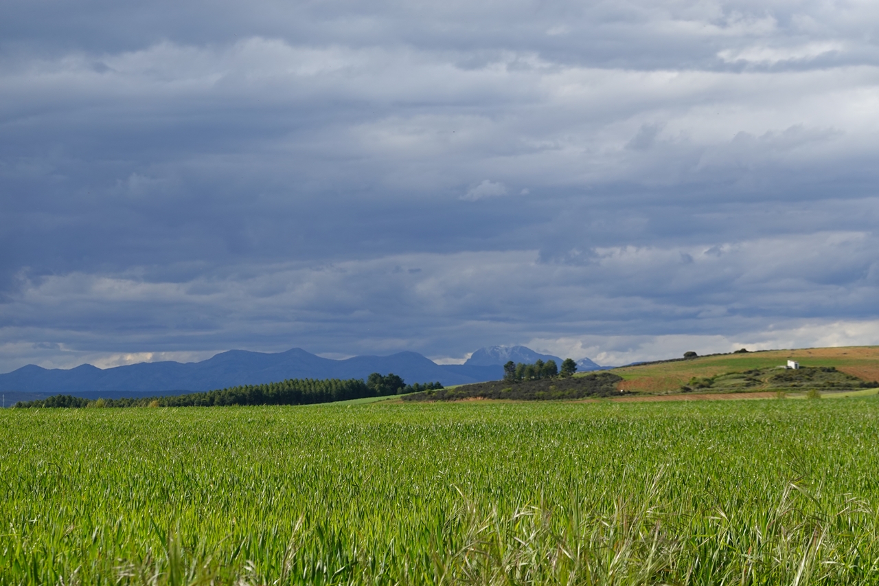 El monte está verde, hay flores por todas partes, incluso los cardos tienen una bonita apariencia, la temperatura es agradable, no importa que el cielo esté cubierto de nubes.