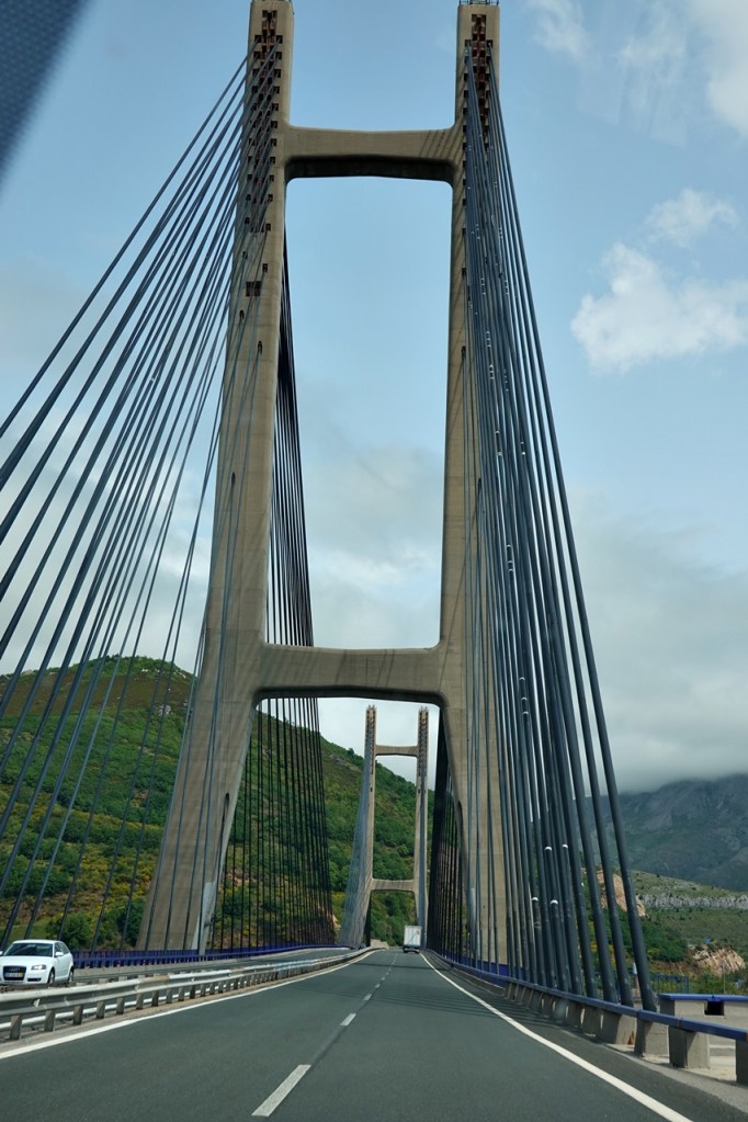 Es difícil tomar fotografías desde el coche, pero alguna logré sacar con cierta calidad. Como el embalse de Barrios de Luna, totalmente lleno, y el magnífico puente Fernández Casado.