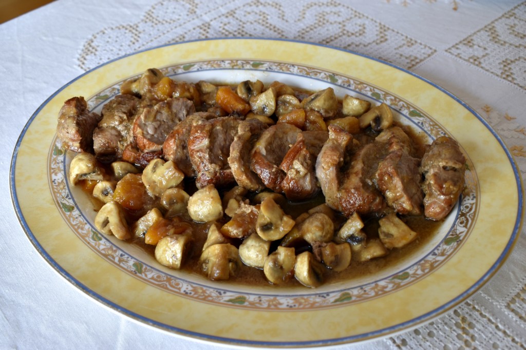 - He partido el solomillo en rodajas gruesas y lo he puesto sobre la salsa. Creo que quedará mejor, ponerlo entero y partirlo después.